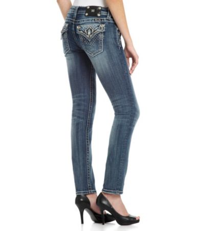 Miss Me jeans are a newer brand (note: started in this decade) that has established themselves as a good, reliable mid-range brand. Here’s a little bio: Miss Me launched its first collection in the Spring of 2001 – with the single purpose to dress the modern girl who was no longer definable, but multi-dimensional in character and style. With this recognition and appreciation, Miss Me designs for those who hold a multitude of passions, personas and cultures. Successfully capturing the many identities of a woman, Miss Me creates three lines to provide versatile pieces that represent every facet of the Miss Me woman – from casual wear, formal wear to nightlife styles.Miss Me has grown to be everyone’s favorite piece in the closet, never compromising comfort for style.Today, the Miss Me brand has developed three successful lines along with a children’s line,Miss Me Girls. Established as the American fashion brand, Miss Me celebrates innovation and quality with young contemporary price points.The line has been featured in Marie Claire, Cosmopolitan and Teen Vogue among others and has been worn by Miley Cyrus, Mischa Barton, Lindsay Lohan and Beyonce Knowles among others. Miss Me can be found worldwide at select retailers all throughout Europe, Latin America, Japan and the US.I was sent a pair of the main line, Miss Me jeans, to try out and review for you guys, and there were some things I loved and some things that were very disappointing.For those of you who know me, you’re aware that I like my denim clean, simple and elegant… but I still need a great fit. Here’s the pair that I was sent (in the three-way shot):This is the Miss Me Irene Bootcut in Palm Hill. Check them out, form your opinions for a second (including how you feel they look on me) and then read on.To begin with, there are a lot of things going for these jeans. For those of you who really like the wide stitch style of True Religion, there are a TON of similarities between the two brands, with two fairly big differences: price (The Irene Bootcut costs $98 retail, while True Religion jeans cost anywhere between $200-400 retail) and fit (I genuinely think that these fit better).But some the similarities of the MM jeans are very similar TR jeans: the arcuate is extremely similar, the wide stitching is something that True Religion is really known for, and the flap pocket, while not an original trait from True Religion, is something they’ve really made popular again.Honestly, they really do fit much better than my True Religion jeans. I don’t know if it’s because of the added stretch, the tighter fit in the upper thighs (the Miss Me seems to run about a half size small) that lifts the butt (between the lifting and the stitching, these jeans are FABULOUS for women who are lacking in the butt department!) or some unknown factor I can’t decipher, but they are fabulous in that respect.They have a nice, medium weight denim that they use, and I really like the wash. It’s flattering, but not overdone (as so many brands are right now). It’s hard to gauge (since I’ve only worn these babies for two days now), but it feels like these jeans would last for the long haul.There are other pairs they have available that are more “me”; they have less vibrant stitching and seem to focus more on the jeans themselves. But, if you like the style of True Religion jeans (especially the wide, heavy stitching they use), these are a great pair to try. They’re in the right price range, fit wonderfully and really provide you with a lifted look in your backside which I think can be oh-so-flattering for most body types.Miss Me jeans only run from 25-31 (with running approximately a half size small), and all seem to have a uniform inseam (the site says that the 26 is a 33.5″ inseam, mine measures at 35″, so I’m not sure where they came up with their number.