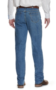 The pants produced by Levi Strauss & Co.—Davis ran the factory that made the pants—were made of denim, a rugged diagonal twill fabric woven with undyed and indigo-dyed cotton thread. Beyond that, the original design hardly resembles the modern jean. These waist overalls were boxy and relied on a back cinch to tighten the pants around the waist. The pants were held up by suspenders that buttoned on the waist. (Belt loops would be added some 50 years later.) The waist overalls, as the pants would be called until the late 1950s, featured two deep front pockets, a small watch pocket and one pocket on the back.Riveted waist overalls made from denim became standard work wear for blue collar workers across America by the turn of the 20th century. Cowboys were among those workers, and Levi Strauss & Co. courted the ranching and farming market vigorously. By 1905, the company was producing catalogs proclaiming, “All Over the West They Wear Levi Strauss & Co.’s Copper Riveted Overall.”Cowboys were prominently displayed in Levi Strauss advertisements for the next 30 years, yet the first “cowboy” pants were not marketed until 1924 by H.D. Lee Mercantile Co. based in Salina, Kansas. The Lee pants featured a wider opening at the bottom of the leg to better fit over cowboy boots. (Lee was also the first company to offer a zipper fly, rather than the traditional button fly.) These pants were later beefed up by three ounces and were marketed to rodeo contestants as Lee Riders. In 1949 Lee introduced a line of denim pants for women, called Lady Lee Riders. Lee Westerners were introduced a decade later to expand the influence of Western styling to a more mainstream consumer.At the end of WWII, rodeos, cowboy movies and dude ranches were important cultural touchstones for Americans, and Western wear as a fashion category was born. In 1948, Blue Bell, a denim work apparel company in Greensboro, North Carolina, hired a Philadelphia tailor named Bernard Lichtenstein to design a new pant for cowboys. Lichtenstein, a Polish immigrant, was known as Rodeo Ben because he designed arena apparel for rodeo cowboys who came to town to perform. The pants he developed for Blue Bell featured high back pockets and a proportional cut with wide, extra long legs that stacked on the foot of the boot and didn’t ride up the leg while the cowboy was in the saddle.